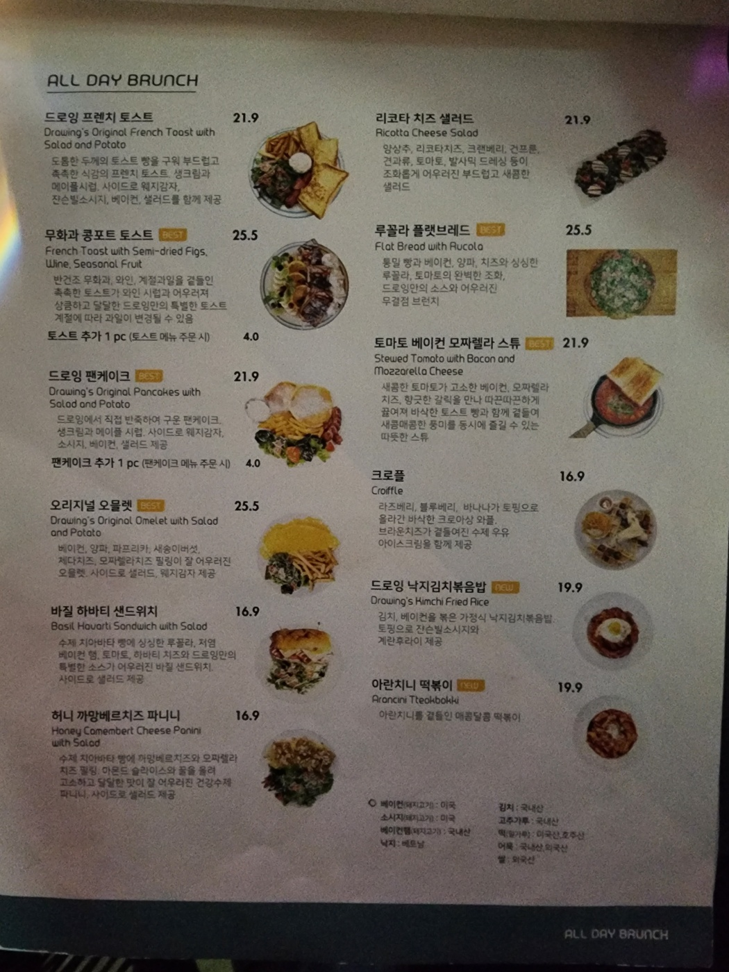 문정역 근처에서 낮에 브런치를 즐길 곳이나, 밤에 2차 갈만한 분위기 있는 식당을 찾고 있다면, 카페드로잉 송파점을 추천합니다. 2년 전 쯤 왔을 때는 일반 카페로 운영하고 있었는데 이번에 다시 방문하니 네온조명으로 인테리어도 바뀌고, 친구들과 2차로 간단히 와인이나 맥주 마시기에 좋아보이더라구요.