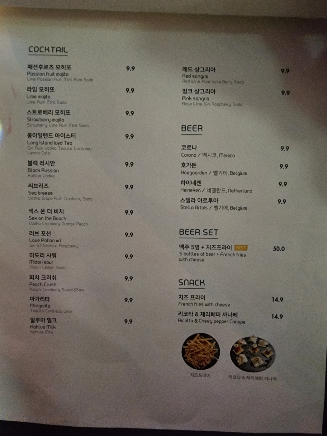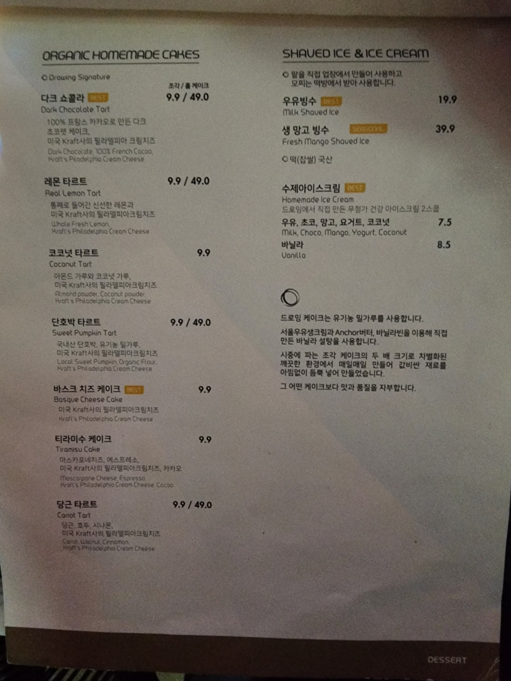 요즘 세상에 한가지 장사만 해서는 살아남기 어렵기 때문일까요, 젤라또, 케이크, 맥주, 와인, 떡볶이를 포함한 퓨전 안주들, 빙수까지 다양한 메뉴를 팔고 있었습니다.